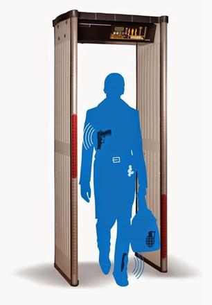 安檢門,又叫金屬探測(cè)門。主要是探測(cè)乘客身上攜帶的金屬利器。原理也很簡(jiǎn)單,就是利用電磁感應(yīng)的原理。安檢門兩側(cè)產(chǎn)生迅速變化的磁場(chǎng),這些磁場(chǎng)對(duì)人體不產(chǎn)生 作用,但金屬例外,因?yàn)榻饘僭谘杆僮兓拇艌?chǎng)下會(huì)產(chǎn)生渦電流,而渦電流又會(huì)產(chǎn)生一個(gè)磁場(chǎng),當(dāng)安檢門探測(cè)到這個(gè)新磁場(chǎng)時(shí),安檢門就會(huì)自動(dòng)發(fā)出鳴聲或閃燈。