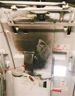 圖為:遭縱火后的飛機客艙