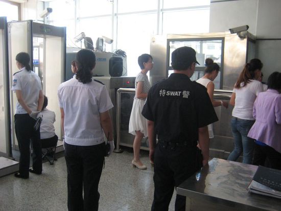 呼和浩特 鐵路公安局、呼和浩特鐵路公安處集寧南站派出所嚴密安檢措施,對進站旅客和行包采取“二次”手檢,根據(jù)人身容易藏匿物品的部位特點,自創(chuàng)“馬扎”式安檢方法,杜絕漏查、漏檢現(xiàn)象的發(fā)生,具體做法如下:旅客逐人通過進站口安全門檢查時,金屬安全門警示燈亮起,2名安檢員一左一右,站在被檢人側(cè)前方45度角的位置,同時對旅客進行全方位人身手檢,其中一人站立負責上身手檢,另一人坐在馬扎負責下身手檢。站立上身手檢順序從頭部、頸部、衣領(lǐng)、墊肩、左臂、左腋下、左前胸、右前胸、右臂、右腋下、腰部,然后請被檢人轉(zhuǎn)身對其背部進行檢查,依次由頭部、后肩、背部、后腰進行檢查。坐姿下身手檢順序從右腿、右腳踝、右腿后側(cè)、腿內(nèi)側(cè)至左腿、左腿后側(cè)、左腳踝進行檢查。